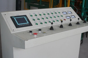 PLC และหน้าจอสัมผัสเป็นผลิตภัณฑ์จาก Siemens ประเทศเยอรมนี ตู้ควบคุมอิเล็กทรอนิกส์หนึ่งตู้ควบคุมทั้งเครื่องทำบล็อกและตัวเรียงซ้อน ซึ่งช่วยให้ใช้งานและวินิจฉัยความล้มเหลวได้ง่ายขึ้น