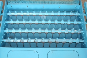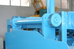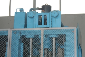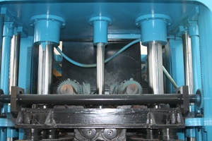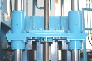 มีกระบอกต้นไม้อยู่บนแม่พิมพ์ด้านบน อันตรงกลางรับประกันความเร็วในการยกและอีกสองอันทั้งสองด้านรับประกันแรงกดของแม่พิมพ์ด้านบน